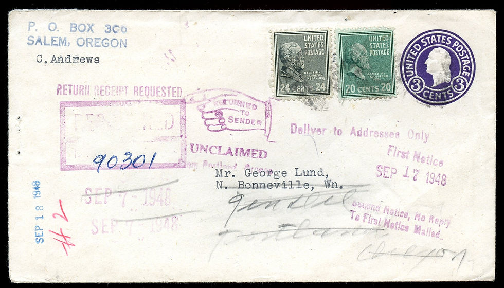 U.S. Scott 828 & 825 Prexies on Registered Return Receipt on Scott U436 Envelope